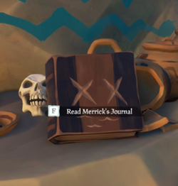 Merrick'southward Journals were a fix of journals added during The Hungering Deep event (and modified soon), which provided clues to helping the players discover the location and summoning ritual for the first Megalodon. During the event, each one generally had ii entries, which would lead the player to an NPC, who in turn would lead the player to the side by side periodical. In total there were three journals in guild: Xx, V, and I.